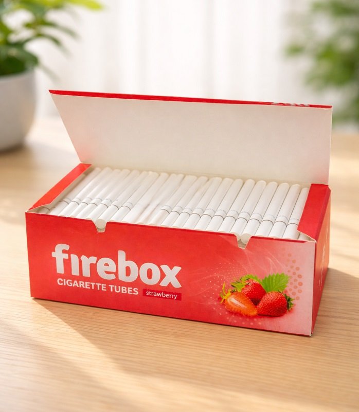 Firebox Strawberry – cigarešu čaulītes ar aromatizētu filtru, piemērotas standarta pildīšanas ierīcēm.