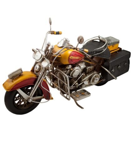 Декоративная модель ретро-мотоцикла - отличный акцент в интерьере для всех, кто ценит ретро-дизайн. Материал: металл Ручная работа Подвижные колёса и руль Реплика мотоцикла классического стиля Размеры: 36 × 14 × 19 см