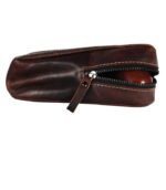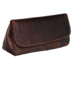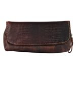 Кожаная сумка коричневого цвета с имитацией кожи крокодила, для одной трубки. Для табака есть отдельный отсек, в нём он сохранится влажным.
